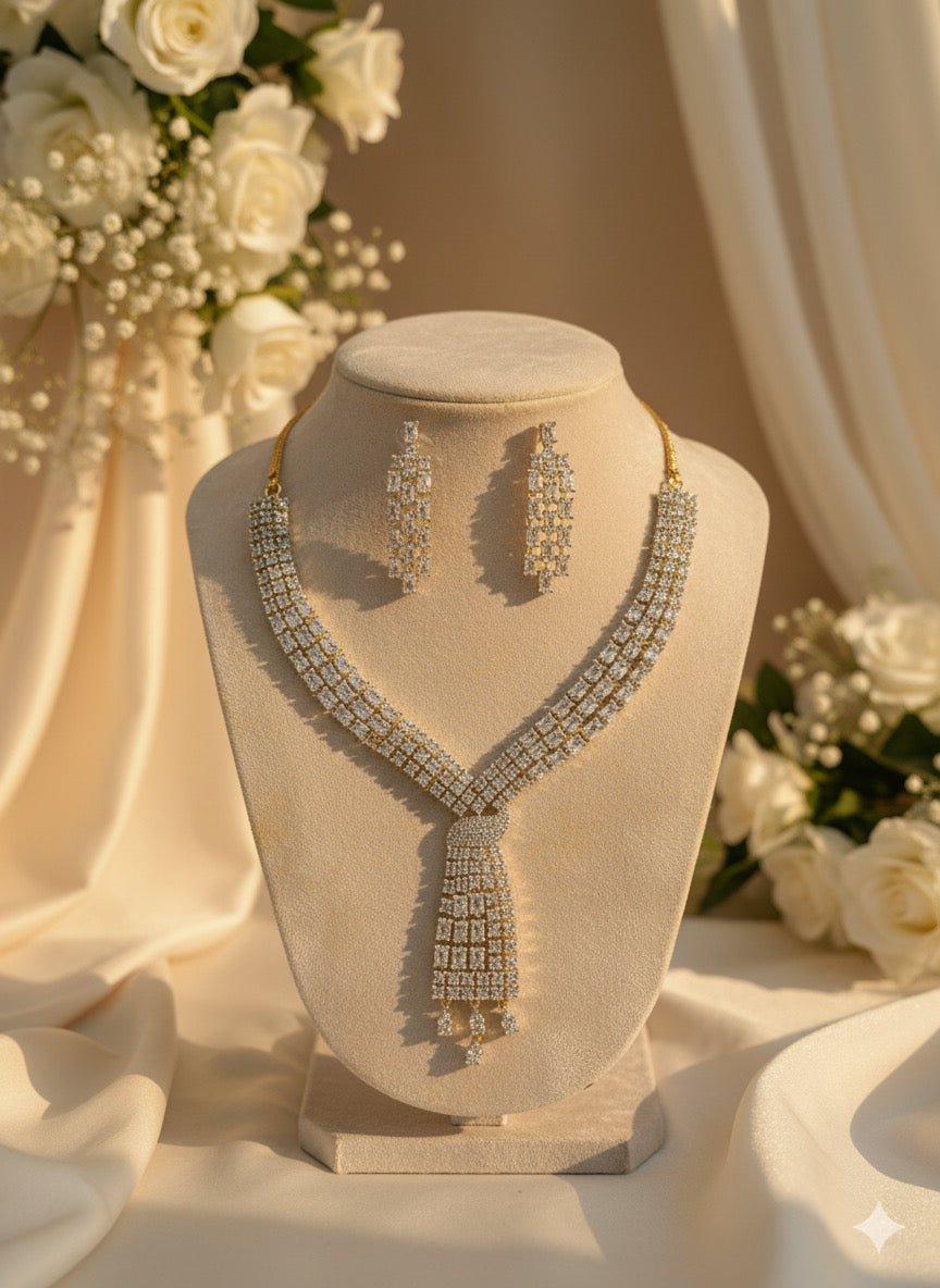 This Sia AD Necklace is the perfect statement piece for weddings, Night functions, and parties. Inspired by Bollywood fashion, it features a beautiful LED display that will add a touch of glam to any outfit. Peaceful and elegant, it's the perfect accessory for brides and fashionistas alike.