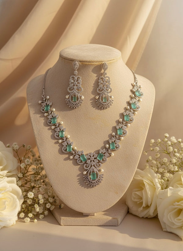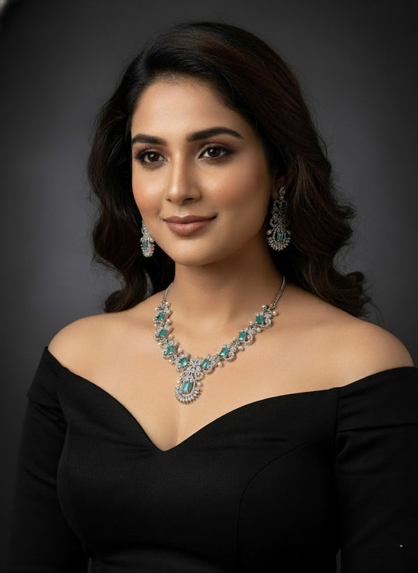 Elevate your bridal look with the stunning Lush AD Necklace. This statement piece adds...