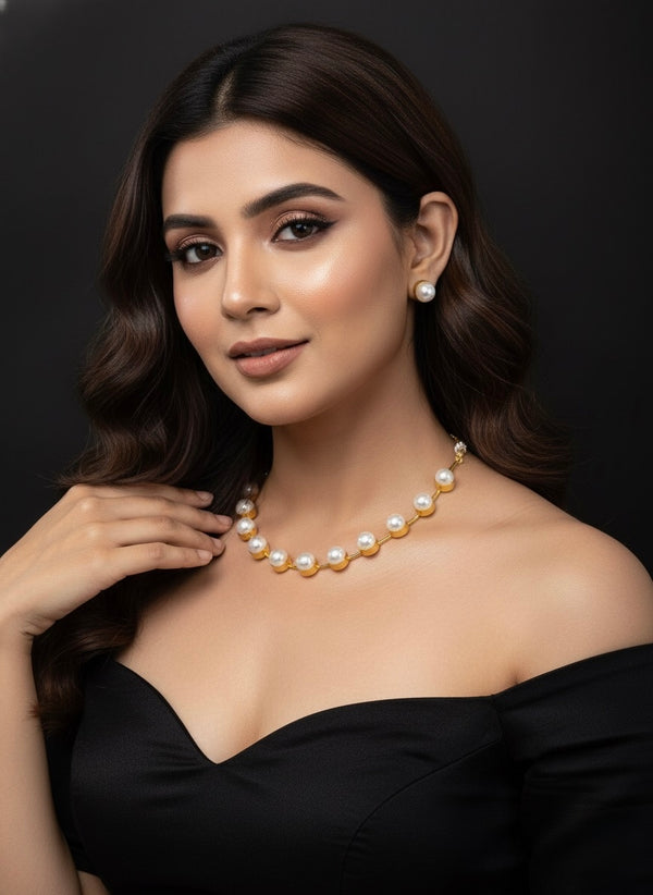 Elevate your style with the Raya Hasli Necklace. This modern necklace features a unique hasli pearl design that adds a touch of sophistication to any outfit. With its sleek and contemporary aesthetic, this necklace is the perfect statement piece for any occasion. Enhance your look with this elegant and versatile accessory.
