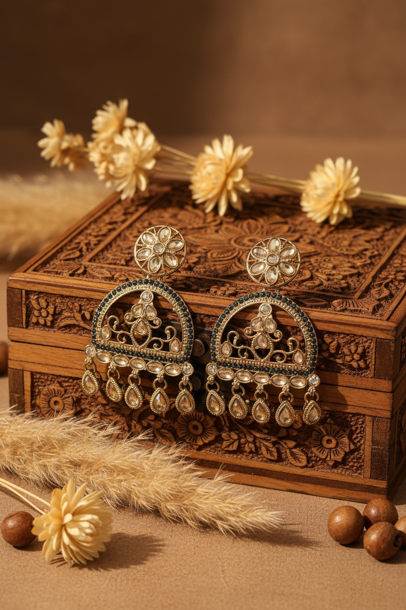 Expertly crafted with lightweight materials, these Mahi Kundan Earrings are trendy and high-quality. With their intricate design and elegant appearance, these earrings are perfect for any occasion. The use of Kundan adds a touch of traditional beauty while keeping the earrings light and comfortable to wear.