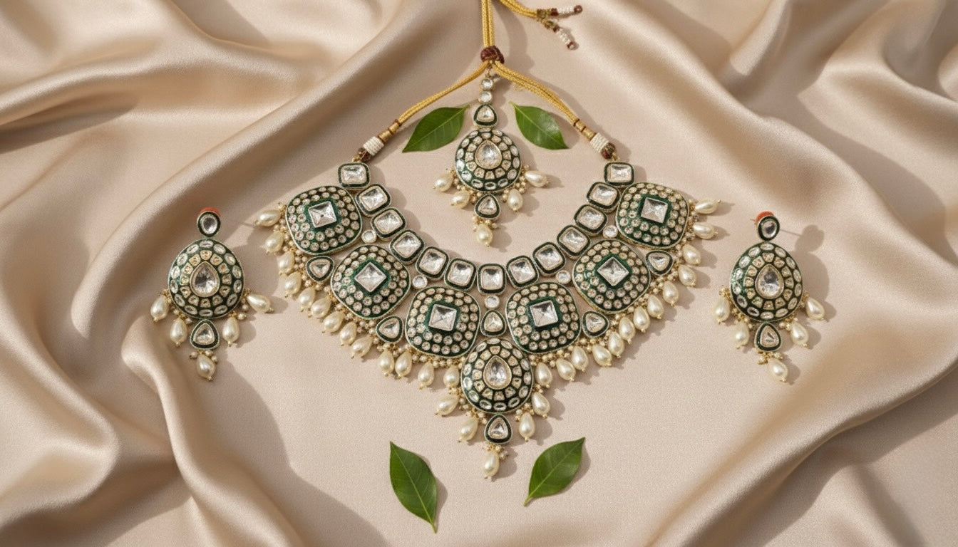 Rajwada Bridal Kundan Necklace (Green and White)Rajwada Bridal Kundan Necklace (Green and White)Rajwada Bridal Kundan Necklace (Green and White)