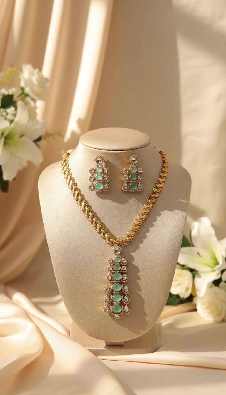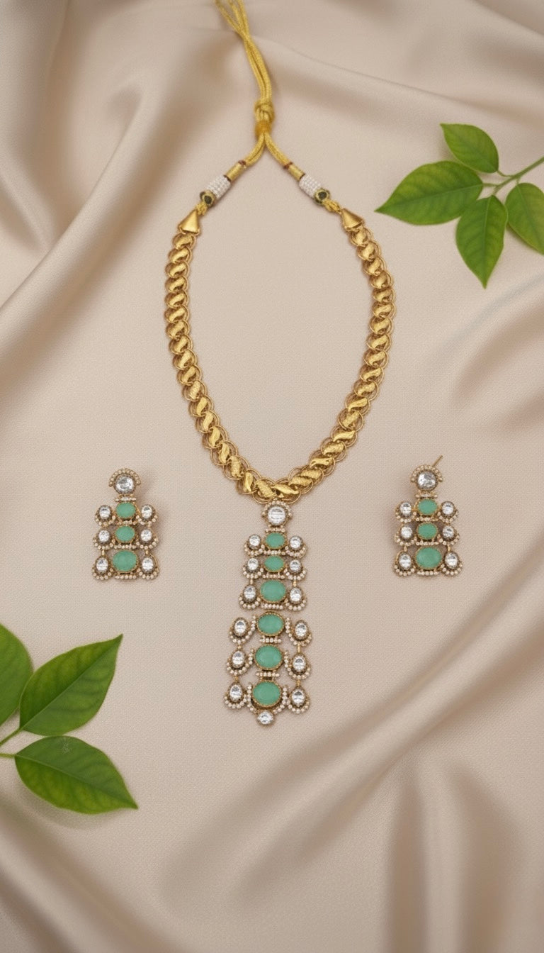 Noorvi AD Necklace (Mint Green)Noorvi AD Necklace (Mint Green)Noorvi AD Necklace (Mint Green)