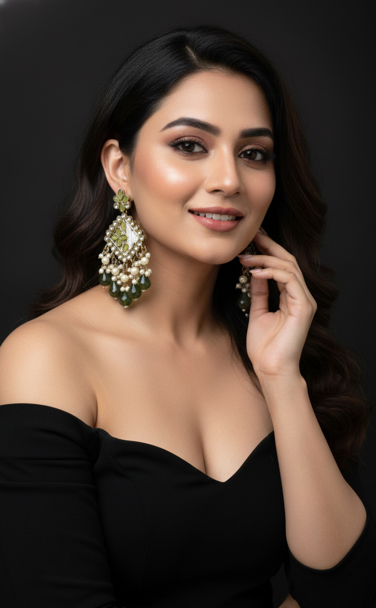 Enhance your style with Ziya Kundan Earrings. These beautiful, lightweight earrings add a touch of elegance to any outfit without weighing you down. Perfect for all-day wear. Elevate your look effortlessly.