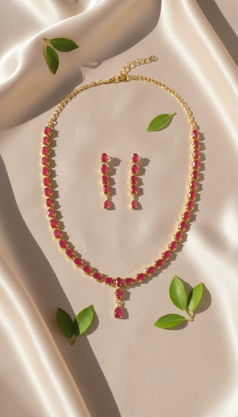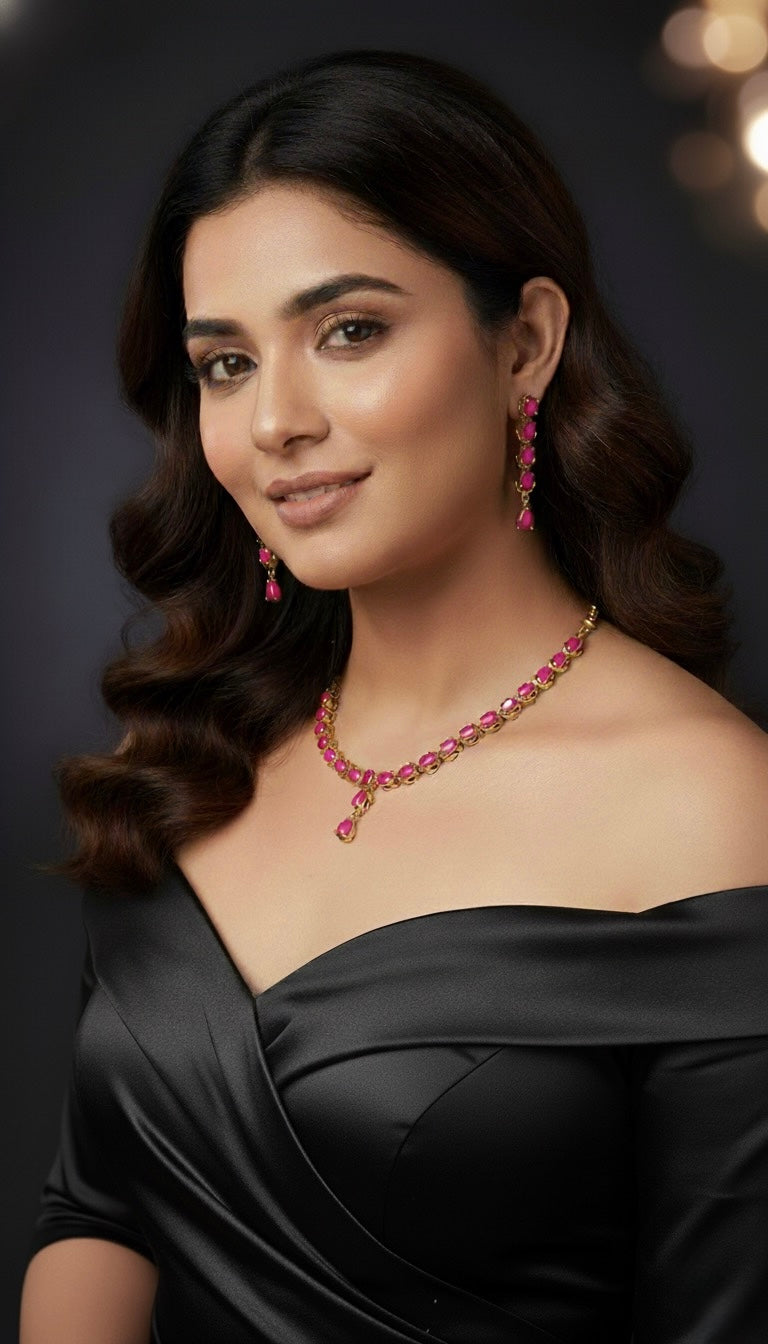 Elara Drop AD Necklace (Pink)Radiant Line AD Necklace (Pink)