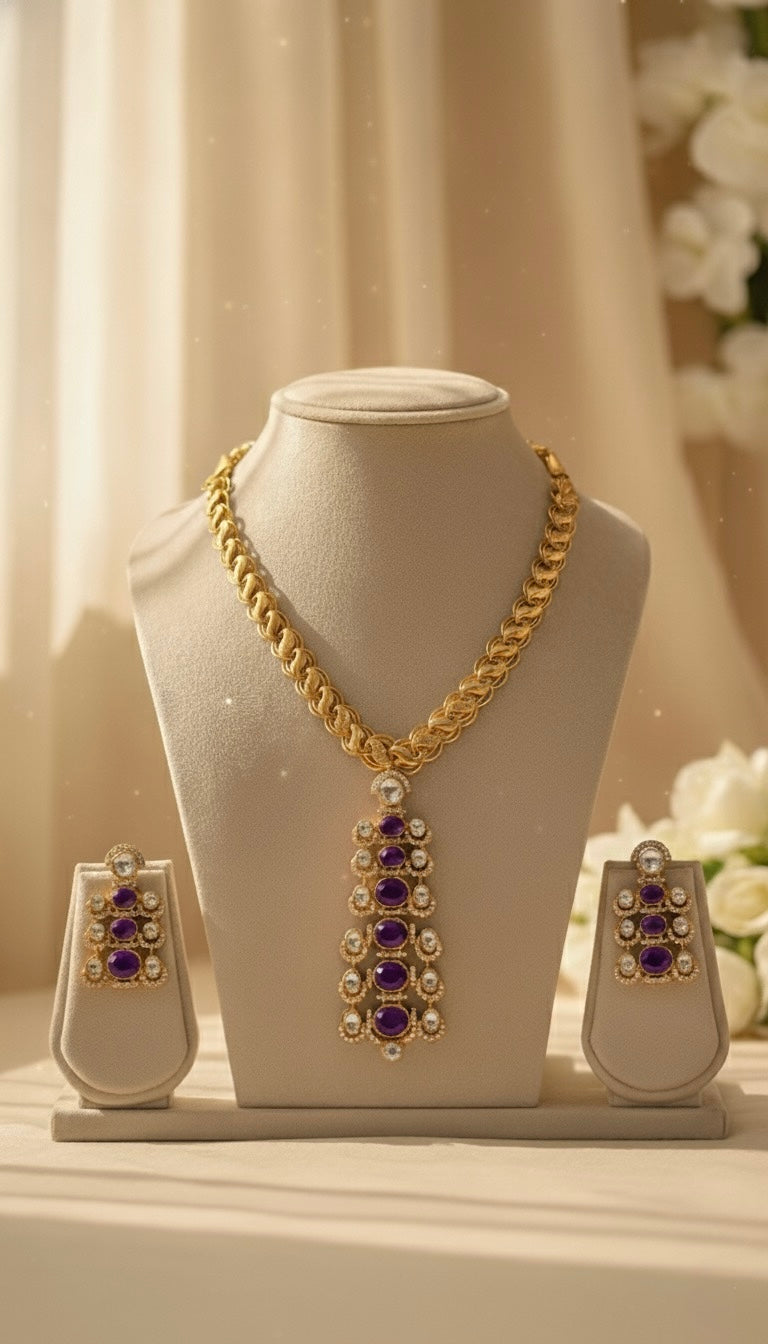 Mira AD Necklace (Purple)Noorvi AD Necklace (Purple)