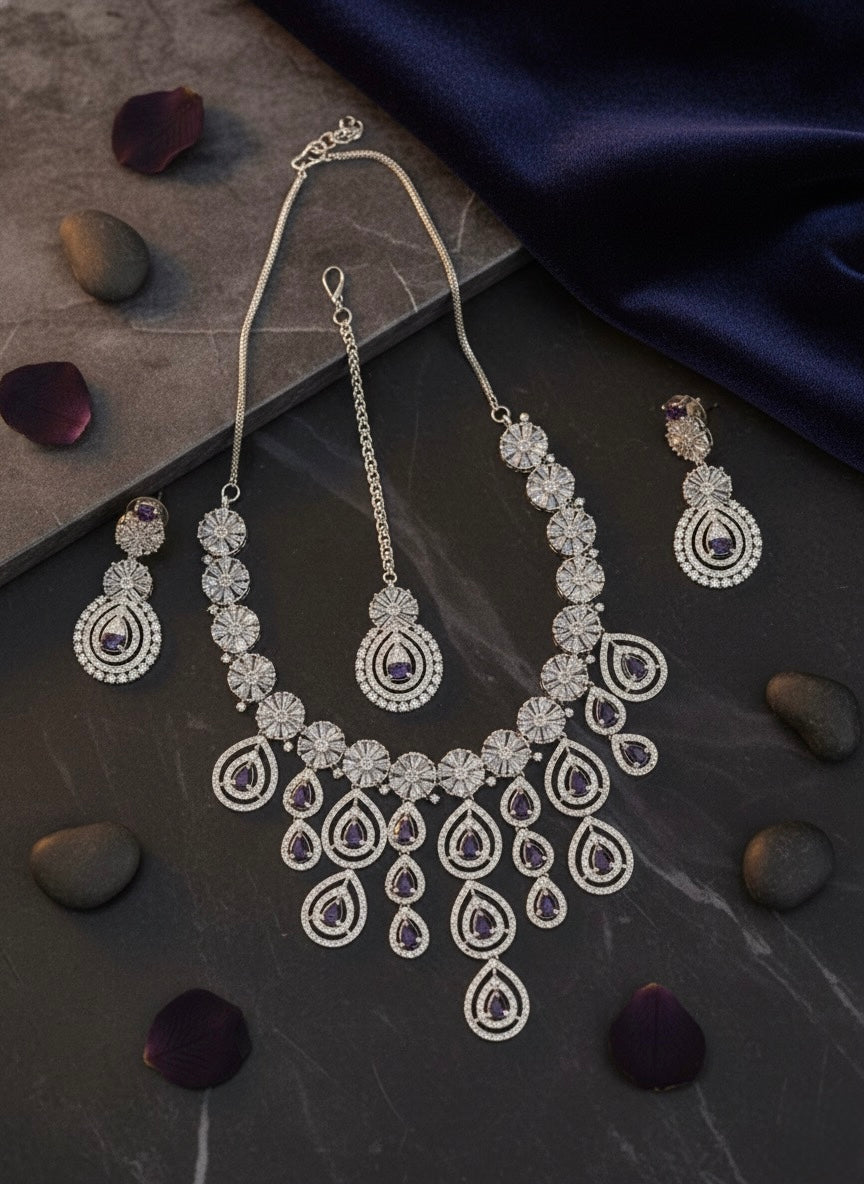 Royal Bloosom AD Necklace (Purple)