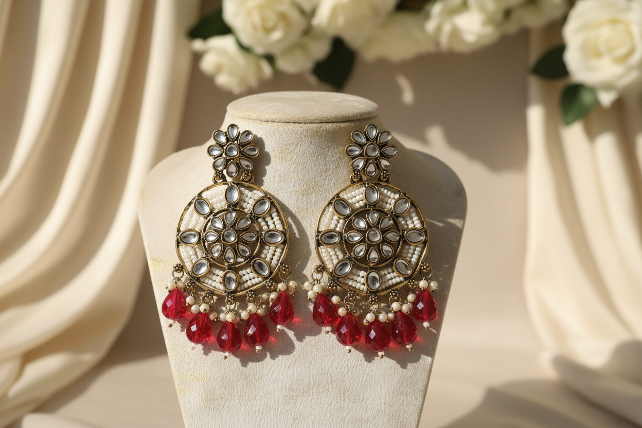 Siya Kundan Earrings (Red)