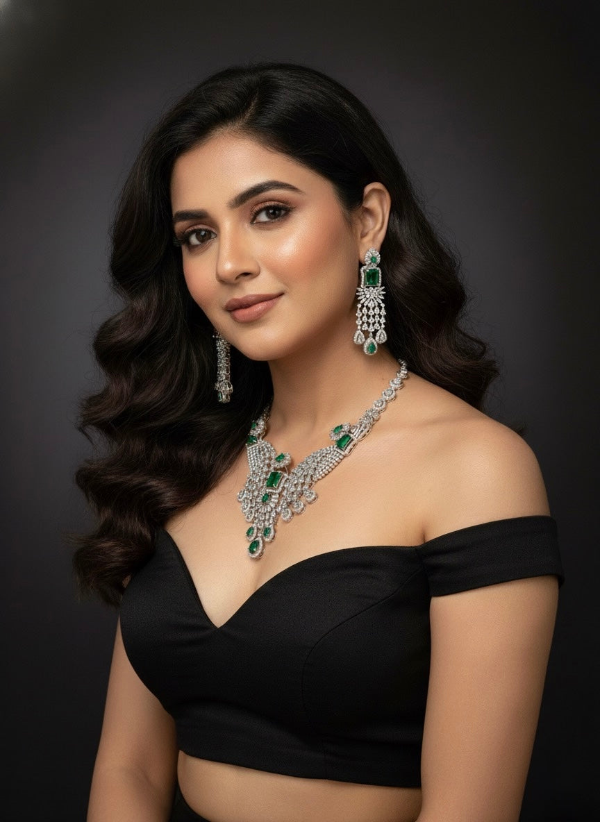 Elevate your bridal look with our Ocean Mist AD necklace. This statement piece is...