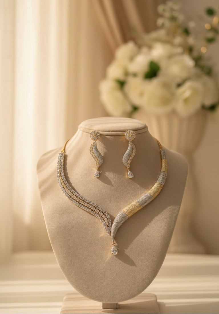 Tara Chokar Necklace (White)Classy AD Necklace (Golden-Silver)