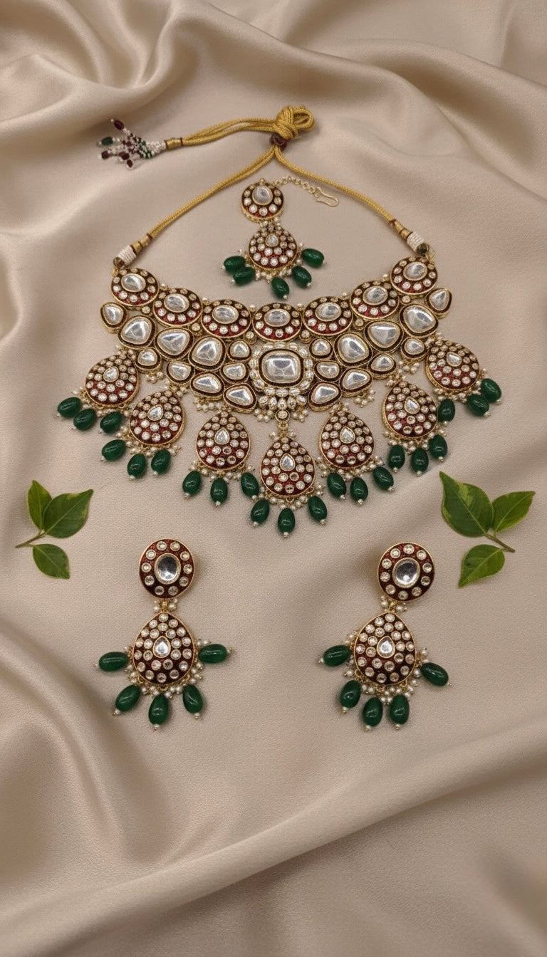 Nayab Kundan Bridal Necklace (Green and Wine)