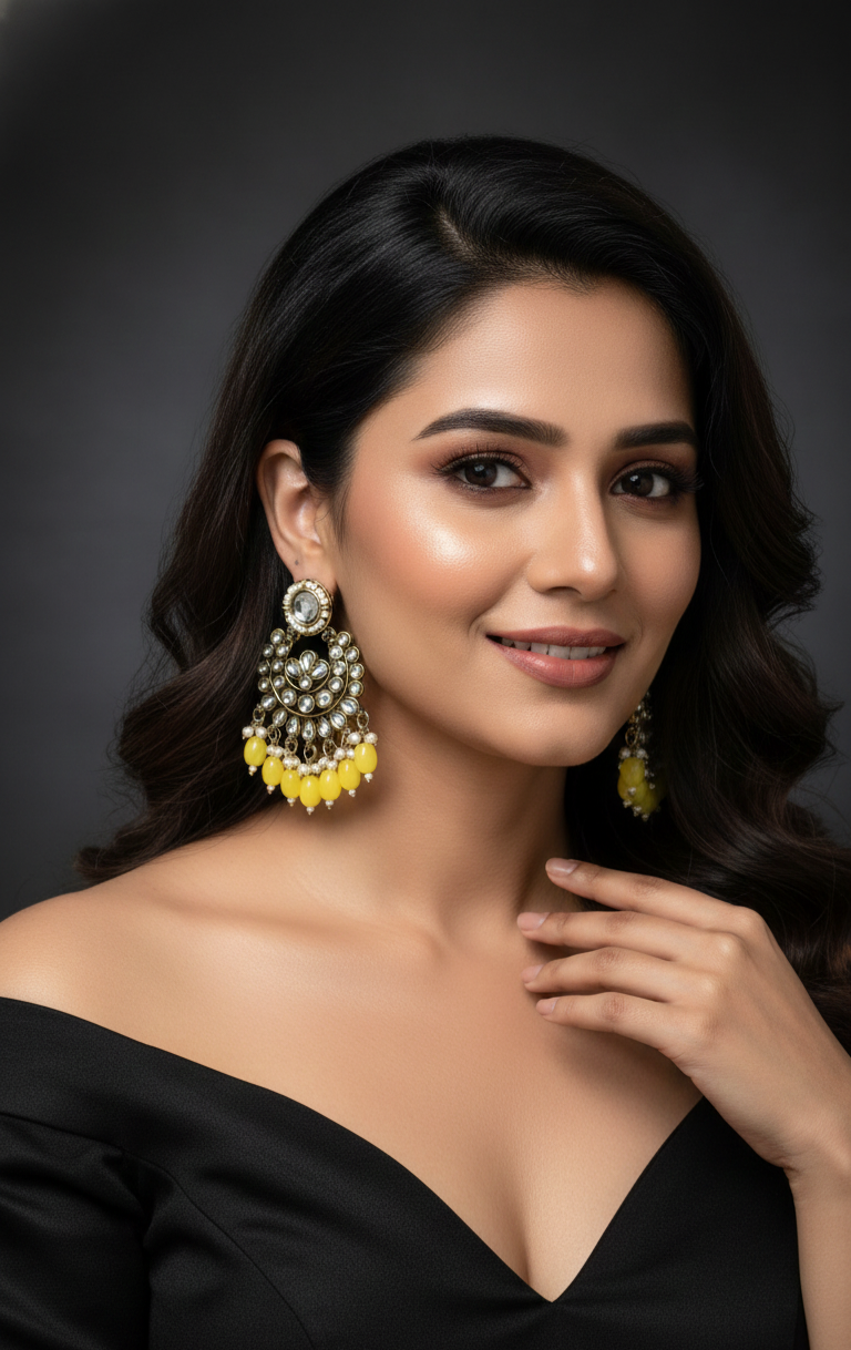 Diya Kundan Earrings (Yellow)Diya Kundan Earrings (Yellow)